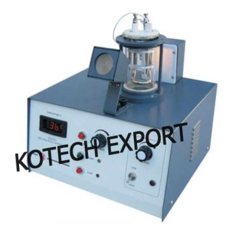 Kotech Export offers low cost high quality Automatic Digital Melting Point Apparatus which is use to measure the melting & boiling point of solid & liquid samples. It is offered with a 4 digit LCD display with a temperature range of 0-300°C along witha set of capillary set for melting point apparatus.