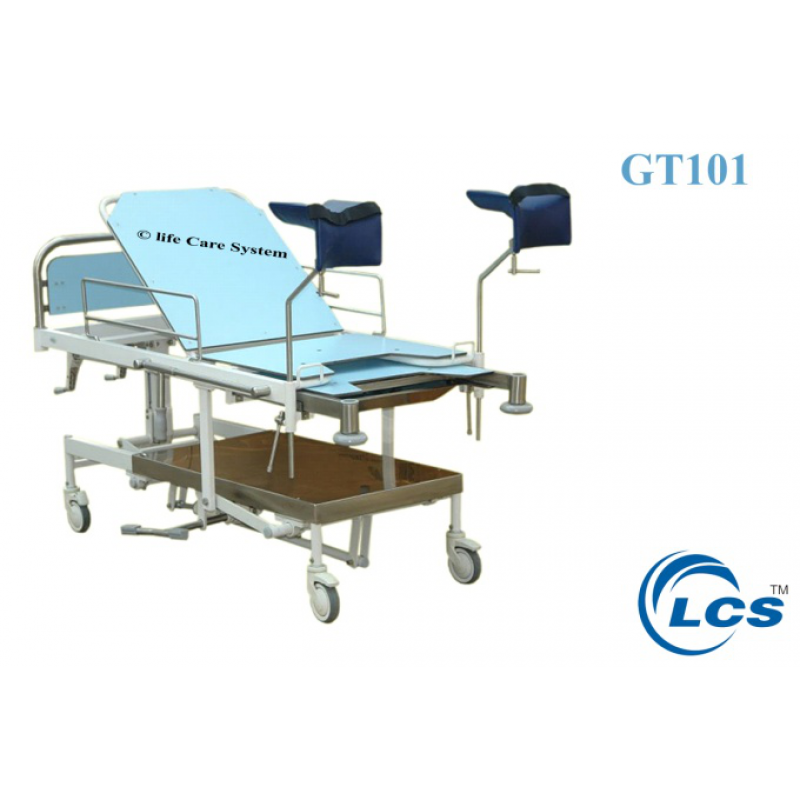 - Complete with stainless steel side railings, tray and I.V. pole.