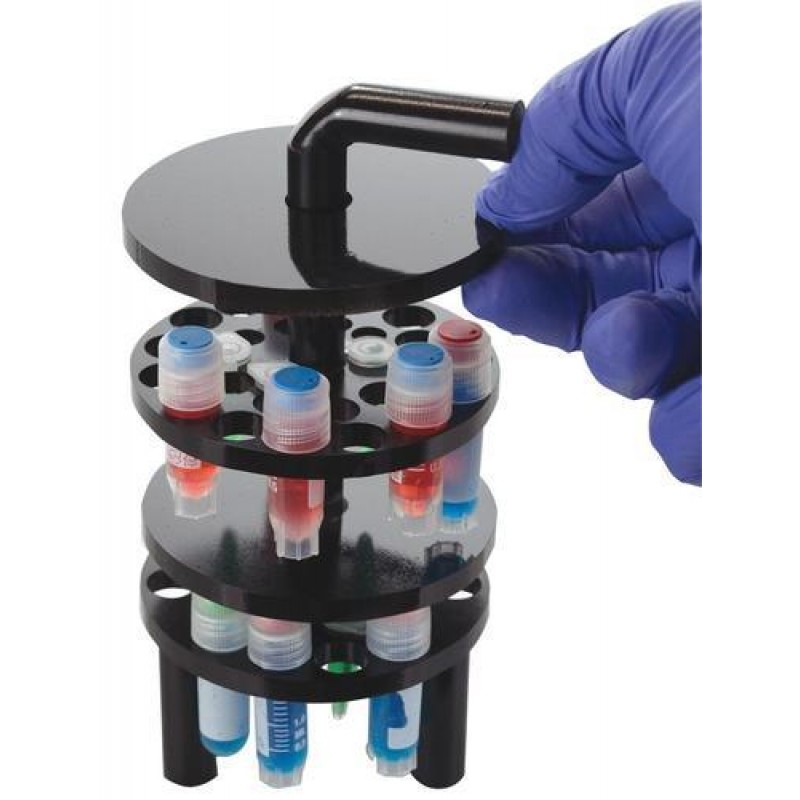 - Features:-Quickly load tubes for freezing-Easily retrieve tubes-Holds externally threaded cryogenic vials, 0.5ml & 1.5/2.0ml tubes-Movable weights prevent floating-Durable PVC construction