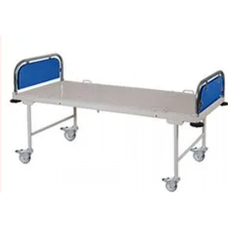 Frame work of bed is made of Rectangular Tube.Top is made of perforated sheet. Tubular Head & Foot Bows are of unequal height. Legs mounted on hard rubber or wheelsProduct Size: 200L x 90W x 56H cms.