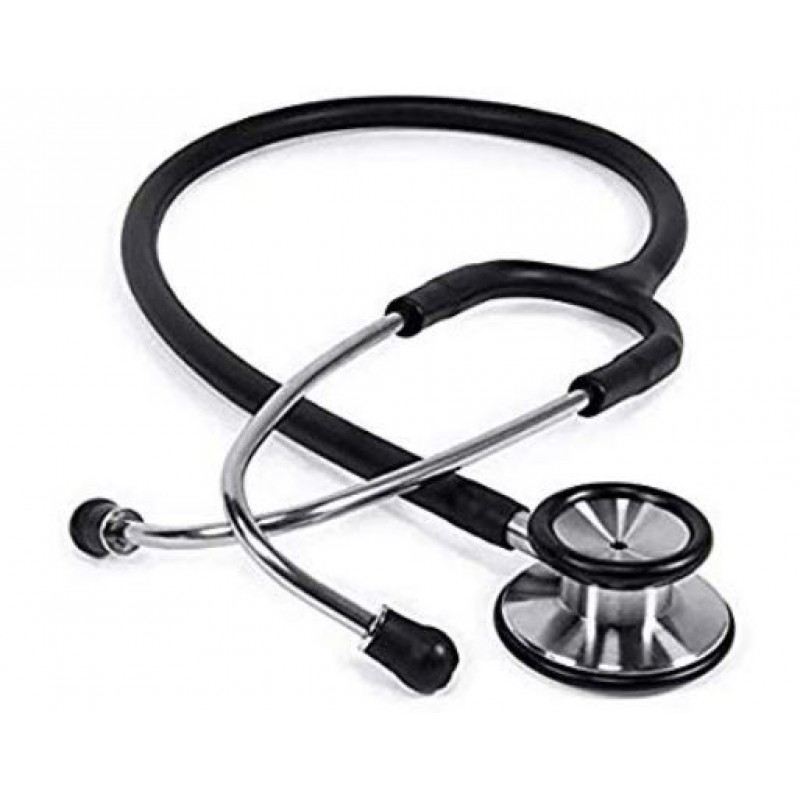Stethoscope double diaphragm is designed ergonomically to ensure comfort and ease for both the doctor and the patient. The durable, single lumen tubing and solid, stainless steel combination chestpiece signify quality. Low and high frequency sounds can be monitored by simple pressure on the chest piece. Dual head chest piece. Supplied box with accessories.