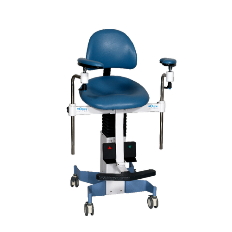 - Noiseless, German DC-Motor controlled height adjustment through convenient foot switch.