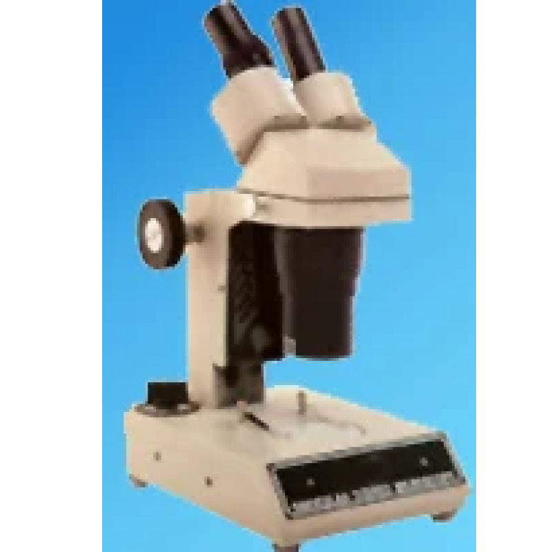 a highly versatile binocular microscope for a wide range of scientific and industrial applications. Equipped with inclined stereo body, binocular observation head, adjustable interpupillary distance, diopter correction eyepiece tube, heavy & stable stand, provided with built-in illumination both for incident (epi) light and sub-stage (transmitted) light for individual or simultaneous use, suitable transformer fitted in base for 6v-15w lamps, revolving turret mount for quick change of objectives. Supplied with following optics, dust cover and cleaning cloth, in a storing cabinet.