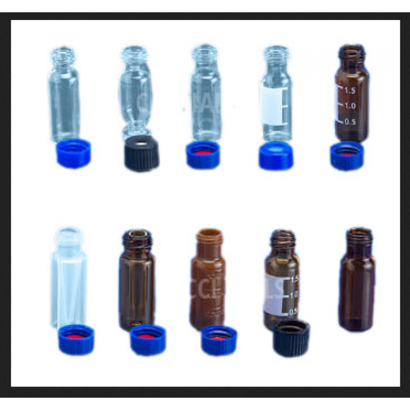 CCITM has wide offering of 11.6mm x 32mm glass and plastic vials, inserts and closures in the industry. 9mm screw thread vials are the preferred choice for modern robotic auto samplers. 11mm crimp top, 11mm crimp / snap, 8-425 screw thread vials are available as individual components as well as convenience kits that include vials, caps and septa. A large selection of closures and limited volume inserts completes the product offering. Cap / Septa are of the best quality and provides inertness for wide range of sample use. Septa Comes with normal, bonded and bonded preslit option to work on different auto samplers.