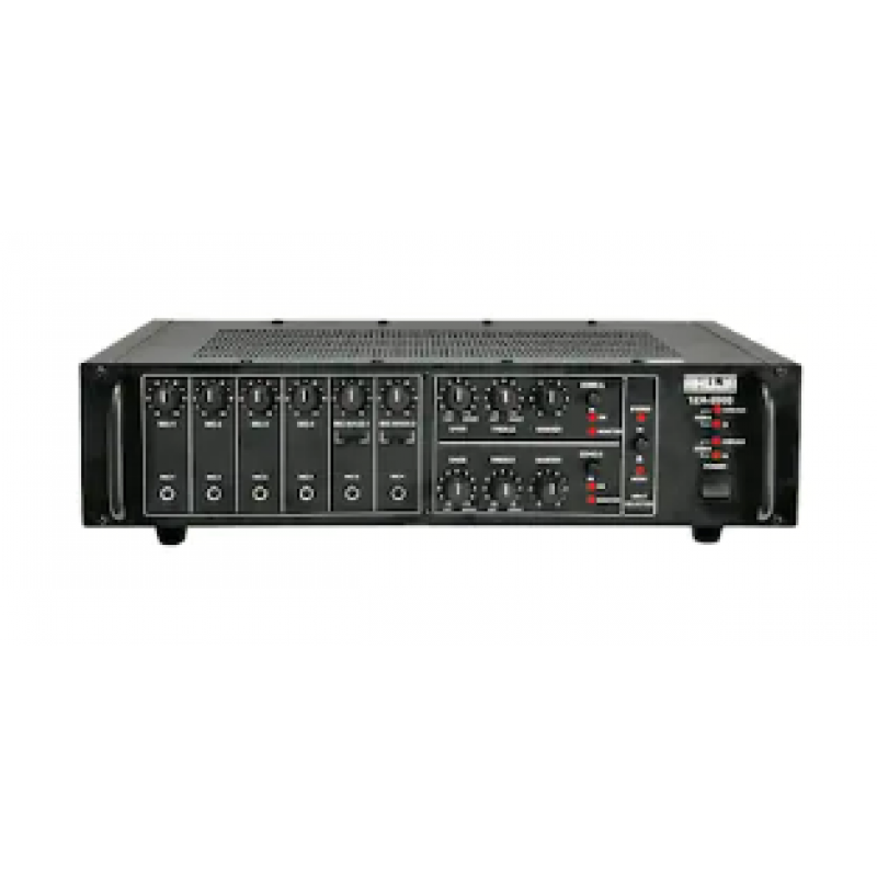BrandAhujaPower SupplyAC: 220-240V 50/60Hz, DC: 24V (2x12V Car Battery)Frequency Response50-15,000Hz +/- 3 dBSignal To Noise Ratio60 dBSpeaker Output4ohm, 8ohm, 70V & 100V for each zoneTypePA AmplifierOutput VoltagePreamp 200mV/600, Line 1V/1kOutput Power130W + 130W Max., 100W + 100W RMS at 10% THD, 90W + 90W RMS at 5% THD, 80W + 80W RMS at 2% THDProduct Weight17.4000 kgProduct Dimensions500 x 140 x 340 mmPowerAC: 420VA, DC: 6.5AWattage200 wInput Channel FunctionsMono 6 x Mic 0.6mV/4.7k, 2 x Aux 100mV/470k, Stereo L/R 250mV/47kTone ControlsBass: +/- 10dB at 100Hz, Treble: +/- 10dB at 10kHzOutput Regulation</- 2 dB, no load to full load at 1kHzProduct ModelTZA-2000