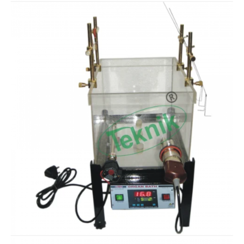 Complete on a Teak base board / Acrylic sheet & bath. Complete with uprights, organ & oxygen tubes, capillary tubing, frontal lever. Temperature by immersion heater controlled by a Thermostat.