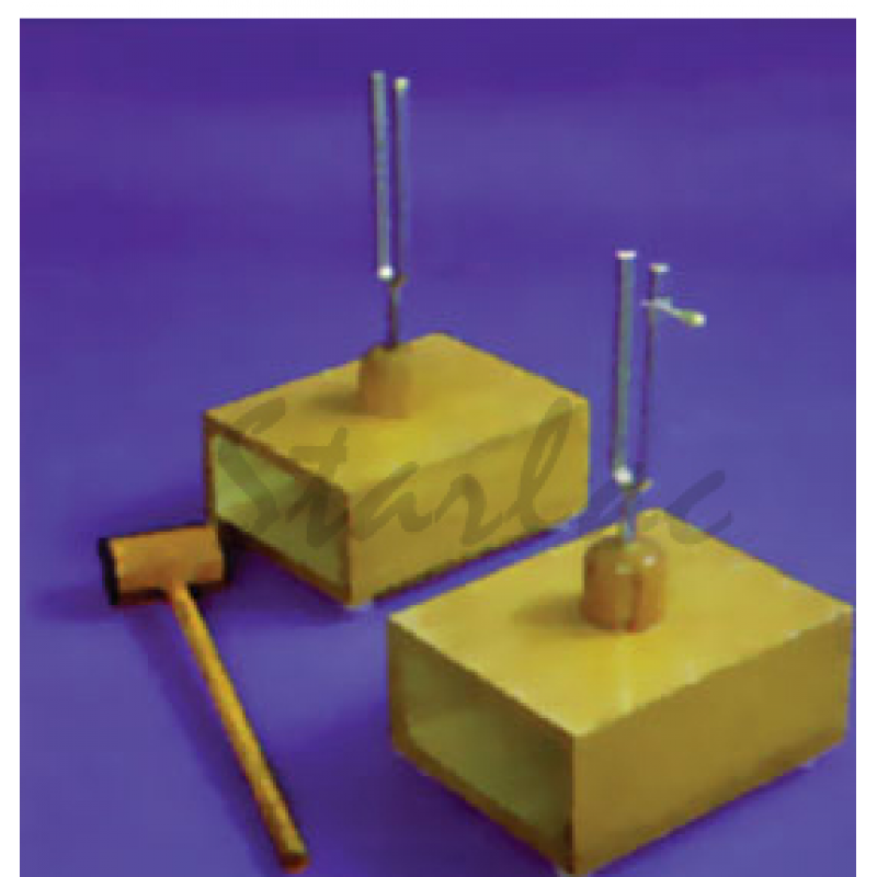 It comprises two tuning forks each of frequency 426 Hz on two separate resonance boxes. One fork is fitted with adjustable loading mass. When both forks are sounded together, a clearly audible beat is produced. Rate of beats depends on difference in frequencies. This difference can be increased by changing the loading mass.