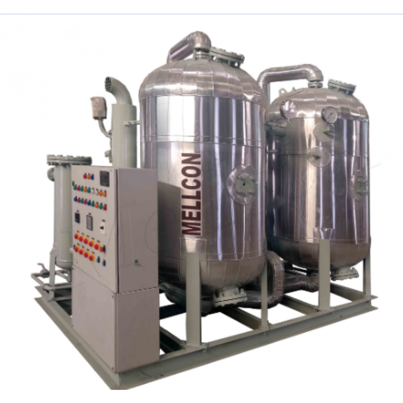 This Air dryer is similar to the Internal Heater type air dryer except that no process air is wasted. For regeneration of the Desicant bed , a blower provides the atmospheric air which is pre-heated in an external heater upto 160 deg C, to regenerate the desiccant bed.