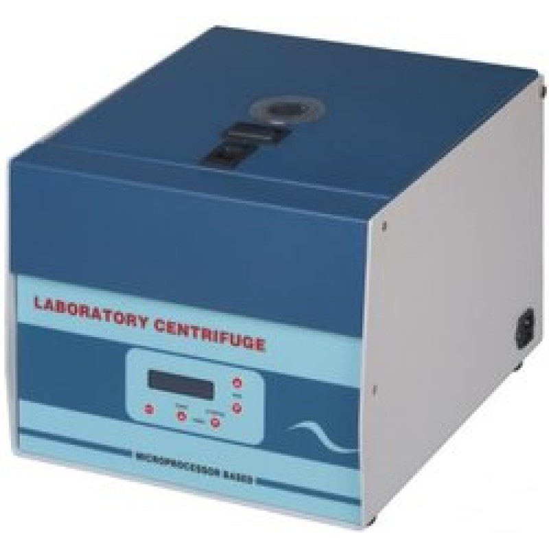 Laboratory Equipment Centrifuge Machine High Speed - Heavy duty sturdy M.S. body, well painted finish, with maximum speed of 6000 RPM at 8 tube of 15 ml total square body, with lid lock manual type, speed control by analogue know, digital display of timer, timer time 0-60 minutes speed display is digital, speed setting with help of knob, auto off if lid open, lid breaking system provided, power consumption 500 watt, power requirement 220V and 50 to 60 Hz, weight approx 15 kgs, total noisness operation, non vibration, complete with head and power lead.