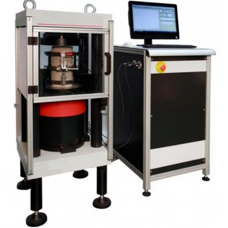 - Load frame is steel welded. It is designed to withstand a few million times of full cycles of loading without any sign of distortion or fatigue. These frames are light in weight. The base carries a fine finished hydraulic ram and the lower platen.