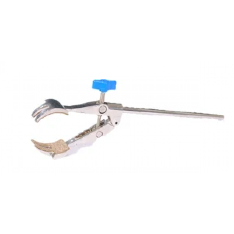 Four prong clamps are designed so that the smaller types will able to hold articles upto 90mm with the larger industrial clamps being capable of holding larger items. Four prong clamp with interlocking jaws allow you to hold objects from 1/8" to 3-1/2" in diameter. It can be used for both burettes and condensers.