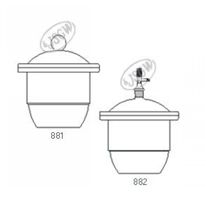 Desiccator, Vacuum with tubular Lid made of Neutral gas and stopcock supplied with perforated porcelain plate.Catalog. No. 882