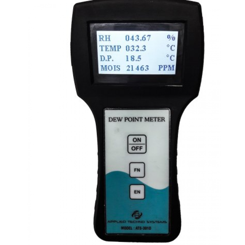 We are the manufacturer of Handheld Digital Dew Point Meter with range of -80 to + 30 Deg C in India Dew Point Indicator Applied portable handheld battery operated Dew Point Meter model ATS-301D are designed to measures dew point, Moisture and temperature faster and accurately over a wide measurements range . Model ATS-301D is highly optimized to measure the dew point, moisture and Temperature for dryers and compressed air/gases.