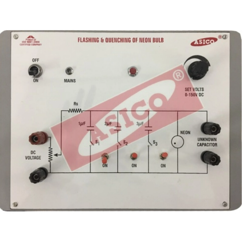 Features :Instrument comprises of High Voltage DC Power Supply 0-250VDC/30mA, 3 Capacitors (Paper Type) connected behind the front panel, can be selected using toggle switches & one Neon Lamp.