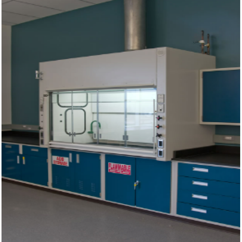 SGM Laboratory Fume Hood is a ventilated enclosure designed to contain and exhaust fumes, vapors, mists and particulate matter generated within the hood interior. Fume hood structures are basically boxlike, with an open side (or sides) for access to the interior of the hood. A transparent, movable panel, called a sash, allows the user to restrict or enlarge the hood opening. The hood is connected, via ductwork, to an exhaust fan, usually located on the roof of the building in which the hood is located. The exhaust fan draws air from the room in which the hood is in through the hood opening and out through the ductwork. The speed of the air moving through the hood opening is known as face velocity. Sigma Fume hoods are manufactured from best quality Wooden /C.R.C.A/S.S./ Sheets of 18/20G which duly provides better protection from acid fumes in the lab. Sigma fume hoods are aerodynamically designed considering most efficient airflow to the suction. Double wall feature provides easy access to utilities like Water, gas, vacuum & electricity. Detachable base storage cabinets are provided with castors for easy maintenance, Sigma offers variety of lining & work surfaces like Granite, ceramic, S.S., P. P. & FRP. Sash is provided with 6 mm toughened glass & counter balance is provided to achieve easy movement. High performance centrifugal blower is provided with different ducting materials like PP/PVC/HDPE etc.