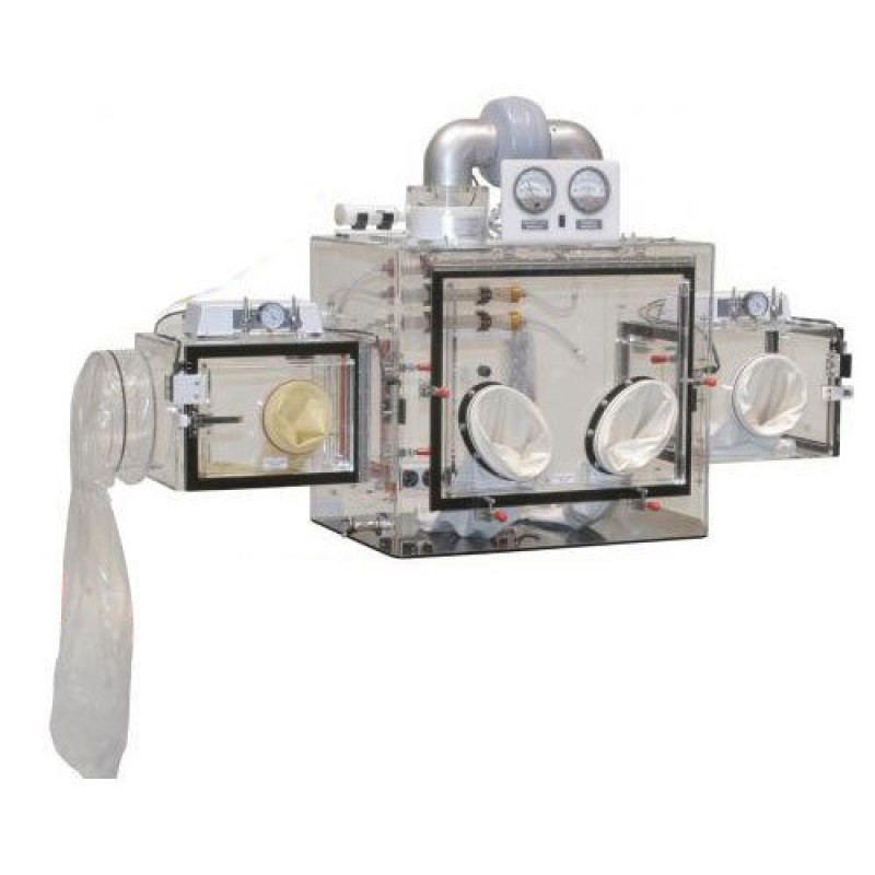 - Two clear acrylic square transfer chambers. Ingress / Egress. No gas valves.