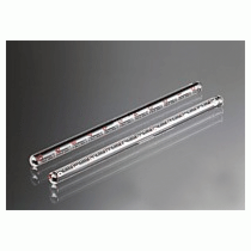Haematocrit tubes acc. to Wintrobe, soda lime glass, straight rim, round bottom, double numbered scale in red/white colour, 105 mm subdivided in 1 mm, outside diameter approx. 6.5 mm, inside diameter approx. 2.9 mm, in cartons of 20 pcs.