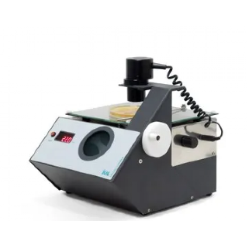 Making a precise inhibition zone measurement (100 µm resolution) manually can become a challenge. The Haloes Caliper helps to perform this in a simple and precise fashion while avoiding parallax errors in readings. Pharmaceutical and clinical labs involved in inhibition zone measurements benefit from the use of this device. A precision rotating wheel accurately measures inhibition zones while being manually spun. This comes in handy during antibiotic susceptibility testing and antibiotic potency measurements.