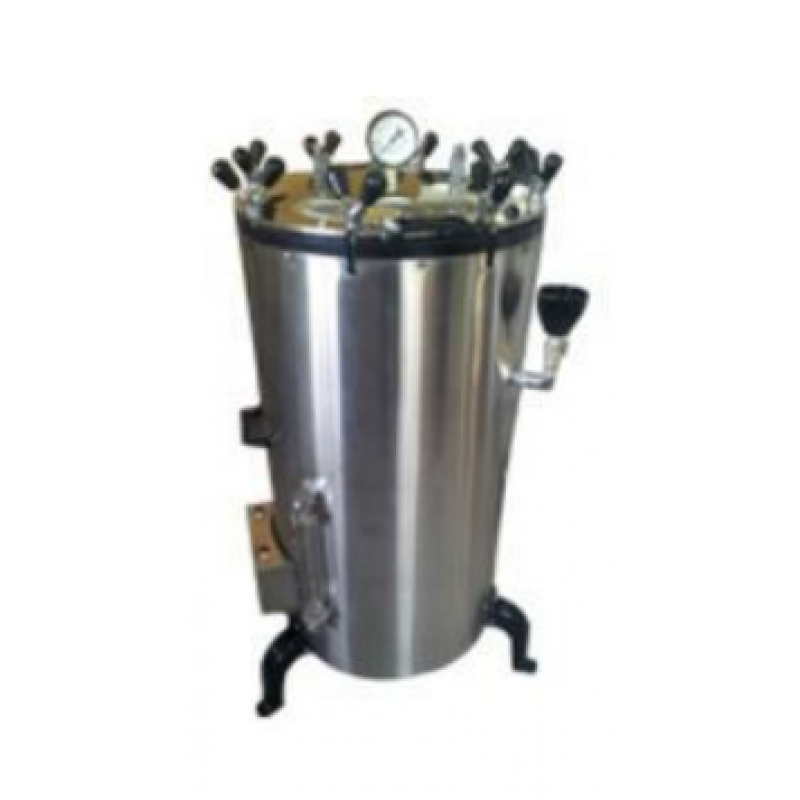 All stainless steel Triple walled construction, lid is made of thick die pressed SS 304 sheet in mirror finish. The unit is fitted with 8 wingnuts to hold the lid at high pressure.Autoclave is equipped With