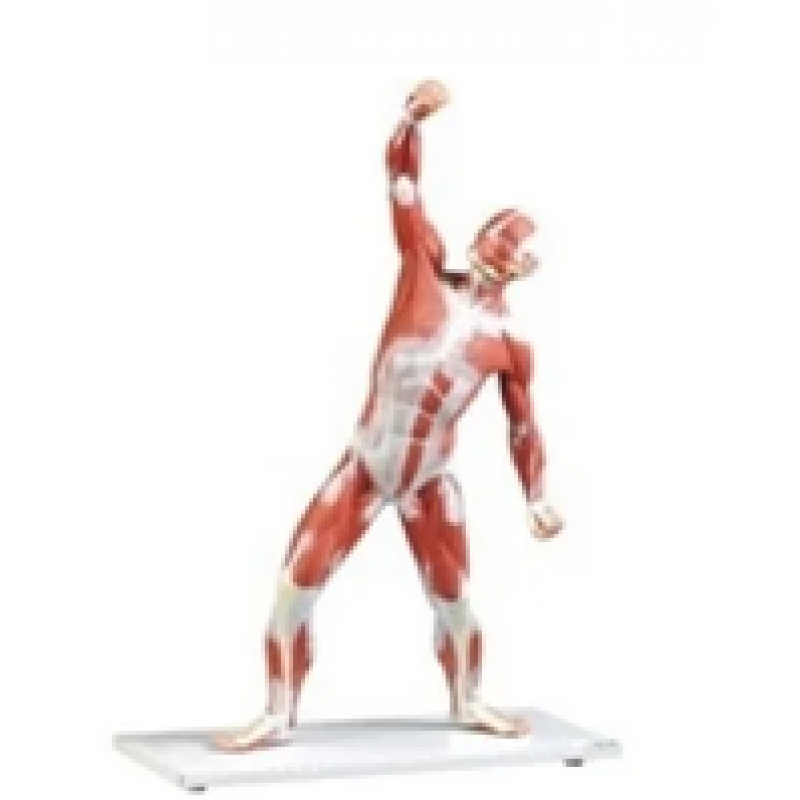 Muscle Anatomy Depicted in Detail, in a Convenient Size. One- quarter life size, and a fraction of the price of full-size models, the Mini Muscular Figure accurately illustrates the structures of all the superficial muscles of the human body. The chest plate can be removed to view the internal organs, and one side includes a female mammary gland. With numbered Key Card.