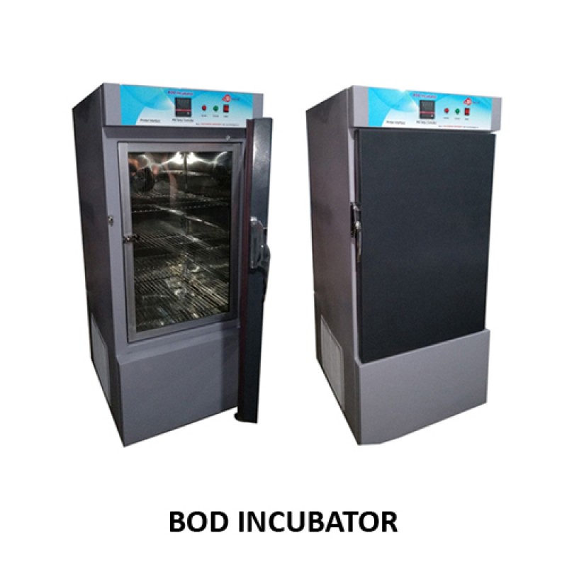 Double walled, inner made of Stainless Steel 304 quality, outer made of thick best quality Mild Steel the surface of which is primer coated for anti rusting and is duly white stove powder coated paint. Insulation between inner and outer wall is done with 75mm thick glass wool to prevent any heat loss. Inner chamber is provided with 2/3 nos. perforated stainless steel shelves with ribs to adjust the shelves at desirable height. Provided with double door, inner made of thick transparent full view glass and outer door is double walled metallic properly insulated with glass wool and also provided with best quality handle, gasket, lock etc. Provided with door operated illumination lamp. Whole unit is mounted on castor wheels. Temp. Range is from 5°C to 60°C and is controlled by electronically controlled by PID Microprocessor Controller with PT-100 sensor. This controller is provided with time delay relay to control the accuracy in maintaining the temperature. Temp. Is maintained with an accuracy of + 0.5°C. Cooling is done with ISI Mark compressor of KIRLOSKAR make which is connected to thick copper coils placed in the rear of the chamber through condenser, fan motor, capacitor, relay etc. Whole cooling unit is placed below the main chamber in a GI housing. CFC Free, Environment friendly. Heating is done with ISI mark strip type heaters placed near the cooling coils. Air is circulated by 2-nos. ISI mark Silicon bind motors, which are connected to balanced blowers, which operates alternatively and continuously with heating and cooling. Provided with On/Off switch, Indicators, Digital Controllers etc.