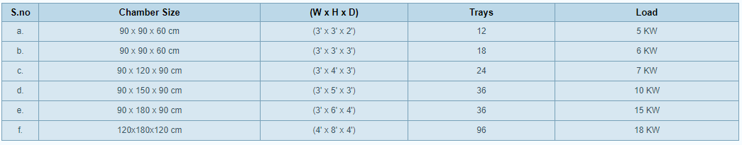 Air circulating fan with heavy duty blower fitted on the Side of the oven with on/off switch. Ventilation is provided the top of the oven. Temperature range from 50-250°C thermostatically controlled. Inner chamber made of M. Steel silver stoving painted. Works on 220 / 240 V, single phase AC supply.