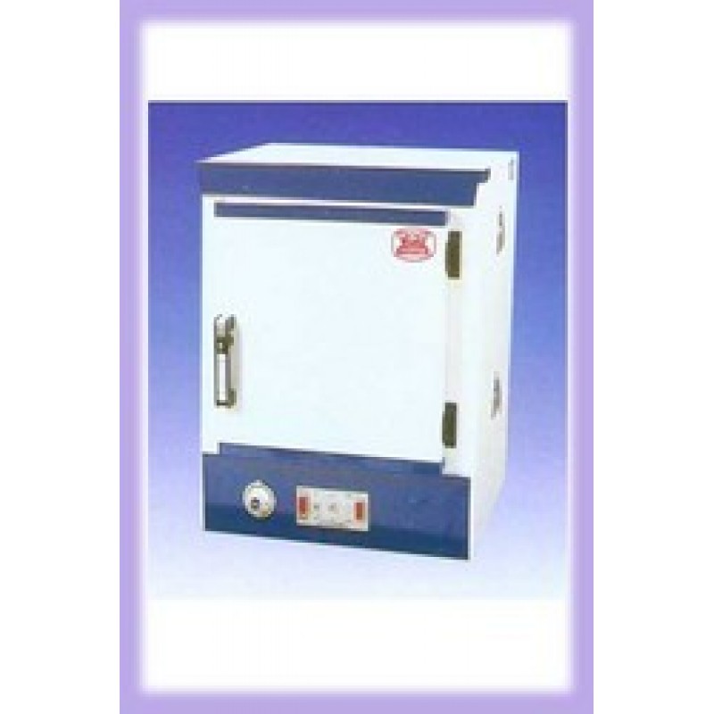 Double walled, 50mm (2") gap between the walls filled with special grade glass Wool. The outer body of the cabinet is finished with white stove enamel and inside of aluminium /stainless steel highly polished, operated on 220 volts A/C. Temperature is controlled by sensitive thermostat, variation +1º C, maximum temperature 250ºC. Supplied with expanded metal/stainless steel frame with galvanized wire netting shelves, air regulator, thermometer tubulature, pilot lamps, 3 heat switches, 3 core wire and plug but without thermometer.