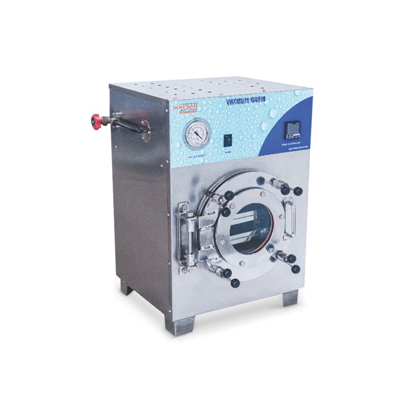 - Door with glass window, silicone gasket & positive latch to maintain seal at all vacuum Levels.