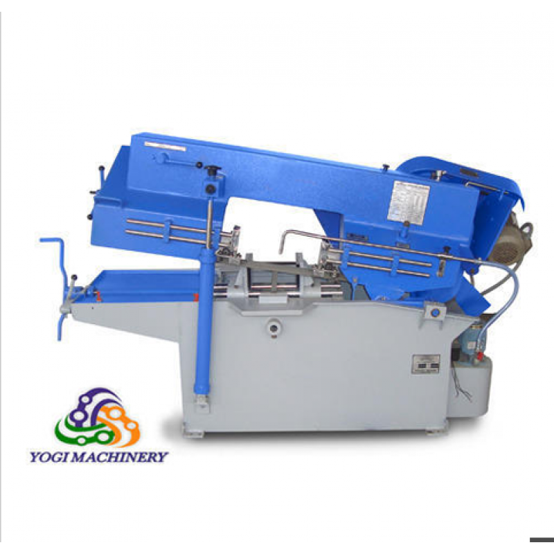 Feeding of the job, clamping-declamping & lifting of the swivelling arm after job cutting is done manually. Swivelling arm works on gravitational force for cutting operation. The controlling of the arm cutting is done with the help of hydraulic jumper & spring. Rotating the knob on hydraulic jumper to get required feed of the arm coming down. Get the required speed of the blade by adjusting v-belt depending upon the material to be cut.