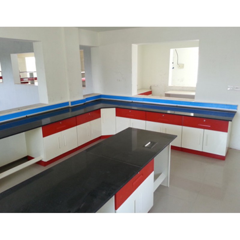 Both sides of the bench are available offering substantial counter top space and ideal traffic flow in the lab. Various lab procedures can be segregated by assigning them to different island assemblies. Usually Sinks are provided on both sides of the bench.