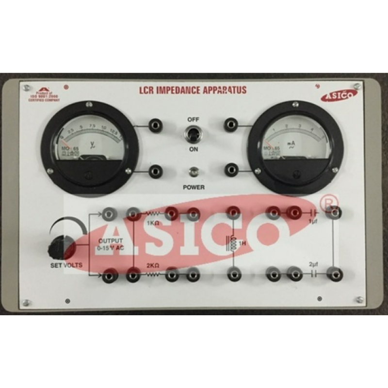Features : Instrument comprises of variable AC Power Supply 0-15 VAC, 2 AC moving coil meters to measure voltage & current, 2 Resistance, 2 Capacitors & 1 Inductance connected inside & connections brought out at terminals
