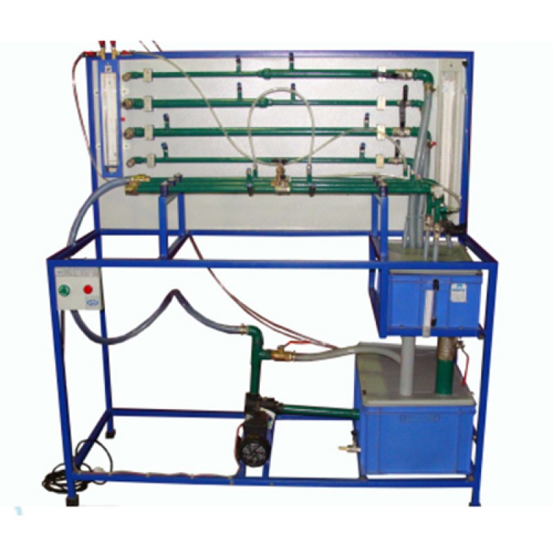 S P Tech Equipments module Losses In Pipe Fittings is a self-sufficient unit in the determination of losses encountered during liquid flow through pipes, which occur due to the presence of bends, valves and enlarged and diminished cross-sections. The system is mounted on a vertical panel provided with castor wheels. The panel mounts a large number of pipes and fittings. Tappings are provided across each pipe fitting to facilitate measurement of head loss. The Test set up of the Trainer can be used along with the Hydraulic Bench (FLM0001), if ordered as FLM0003SU.