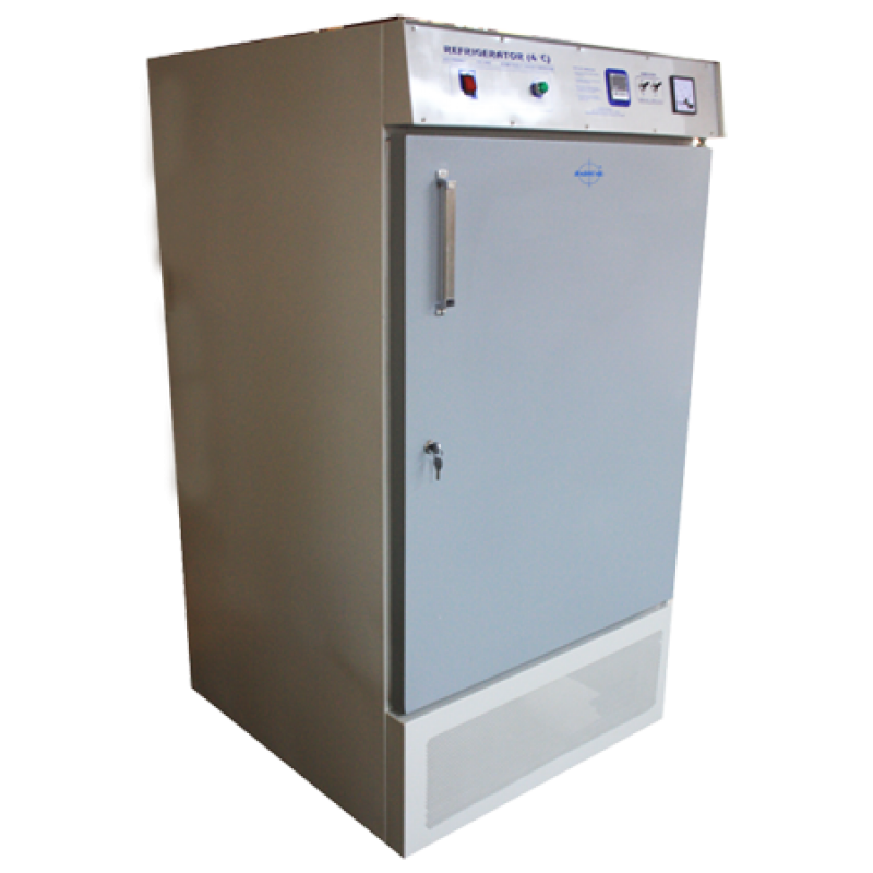 The inner chamber in made of stainless. Steel sheet and outer of PCRC sheet duly powder coated. Mounted on sturdy iron frame with castor wheels for easy mobility. The temperature is maintained between 4 to 6 DegreeC with forced air circulation ensures uniform temperature, for storing medicines. Temperature is controlled by Dual Display Microprocessor PID Digital Temperature Indicator cum Controller. Laboratory Refrigerator RSTI-127 Audio/ Visual Alarm triggers in the event of temperature fluctuations. Highly efficient refrigeration unit is housed on the bottom.