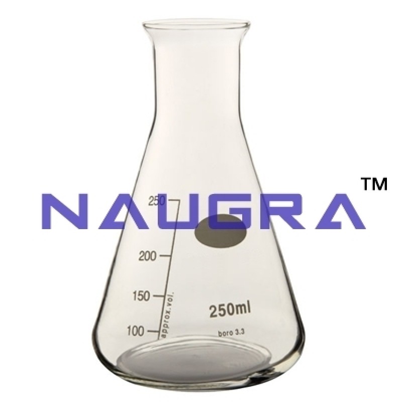 Flask Erlenmeyer narrow neck graduated for Science Lab - Flask Erlenmeyer narrow neck, graduated Capacity ml Approx. OD x Height (mm) 25 42 x 70 50 51 x 82 100 65 x 105 250 85 x 140 500 105 x 175 1000 130 x 220 2000 165 x 285.