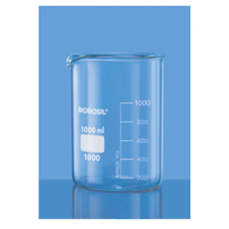 Borosil Low Form with Spout Beaker complies with IS 2619 / ISO 3819 and DIN 12331. The spout design enables clean and precise pouring. Its uniform wall thickness distribution makes it ideal for heating liquids. The easy-to-read scale and large labelling field make marking easier. It has high resistance to chemical attack.