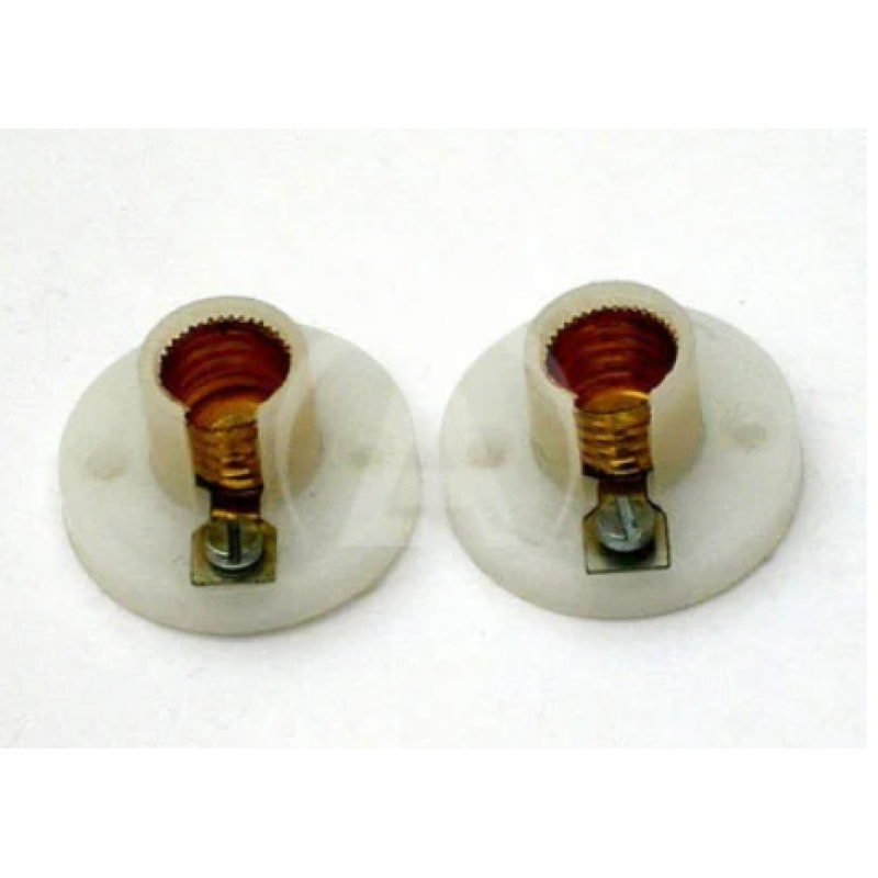 To take flashlamp bulbs, moulded plastic base with two screw connections.This miniature plastic light socket or lamp holder is perfect for low voltage circuits such as electricity experiments, educational activities or science projects. This lamp holder features a rolled shell of brass mounted in a base with two screw terminals and two pre-drilled holes to mount to a project board. The base diameter is 1 1/4" and the height is 7/8". It holds 1.2-volt, 2.25-volt and5.1-volt light bulbs lamp holder is used for miniature lamps.