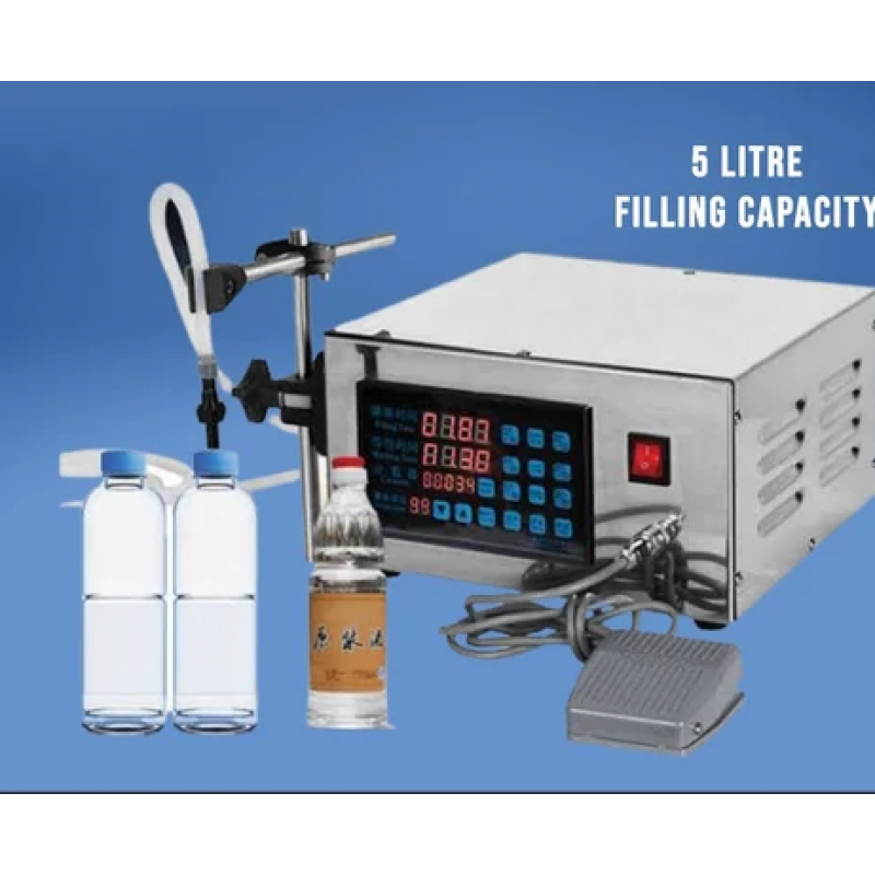 The digital liquid filling machine is a semi-automatic machine, used to fill an accurate amount of liquid in bottles and containers. These machines work on the principle of gear pump filling. It is a compact machine with an attached silicon pipe. These machines have low power consumption and are easy to operate