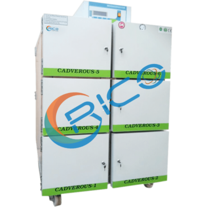 - The control panel with all the control and circuitry is placed on top of the fitted with the Temp. Controller Low Indicator, to select the desired temperature provided with the Volt meter on the panel to read the incoming voltage, the LED With the display high and low temperatures have been installed with audio visual alarm.