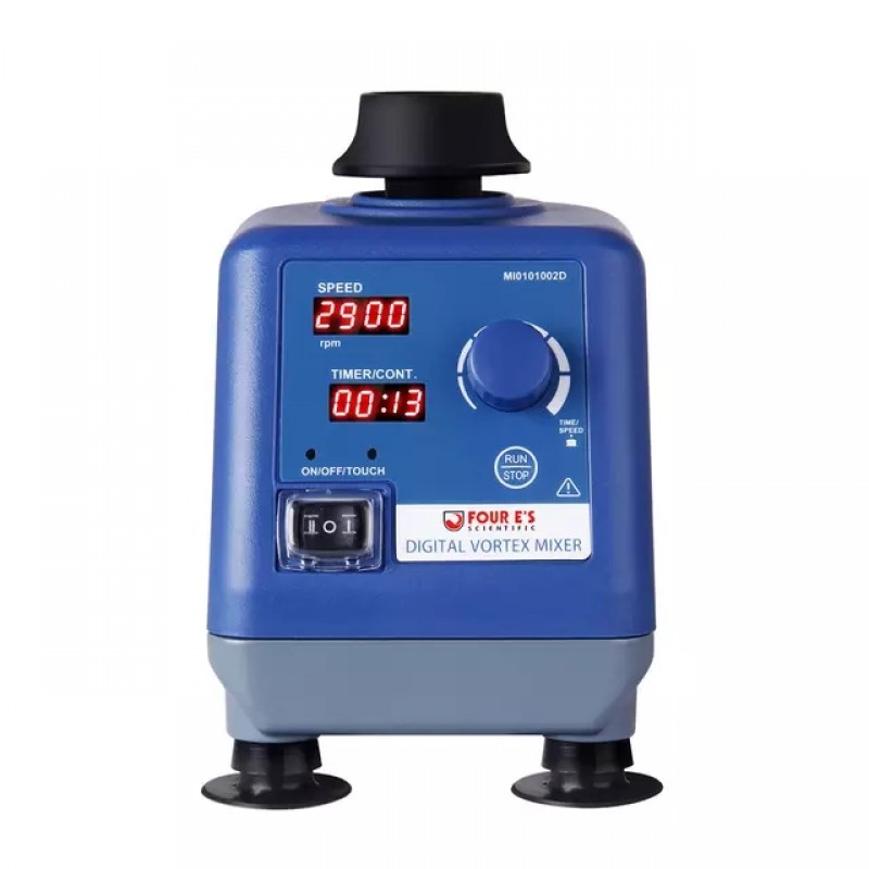 The Variable Speed Vortex Mixer comes with separate LED displays for Speed and Time. This combined with a rotary dial for speed & time selection, enables accurate control of speed and time settings. The sturdy metallic base and perfect dynamic balancing eliminates any movements and dampens vibrations while mixing. The Mixer has three operating modes: touch, timed, and continuous modes. A three-way power switch changes mode of operation from ‘touch’ to ‘timed’ or ‘continuous’. The Vortex Mixer is designed for use with interchangeable accessory attachments that can hold test tubes, flasks, beakers, and microtiter plates.