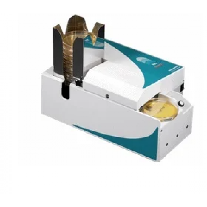 - Flexibility: Identified Petri plates await being collected, once removed, a new plate is processed. Alternatively, a whole stack of plates can be processed at once, labeled plates can be collected in an optional collecting platform.