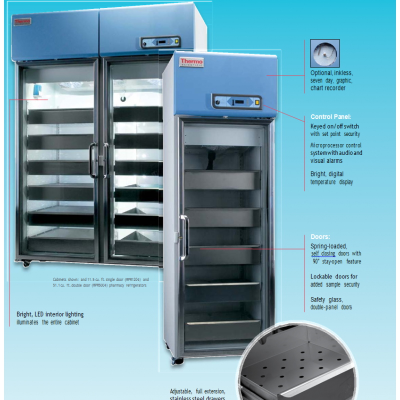 pharmacy refrigerators deliver stable temperature control over a range of +1°C to +8°C. They can be configured easily for accurate storage and retrieval of pharmacy products, and feature full extension stainless steel roll-out drawers.