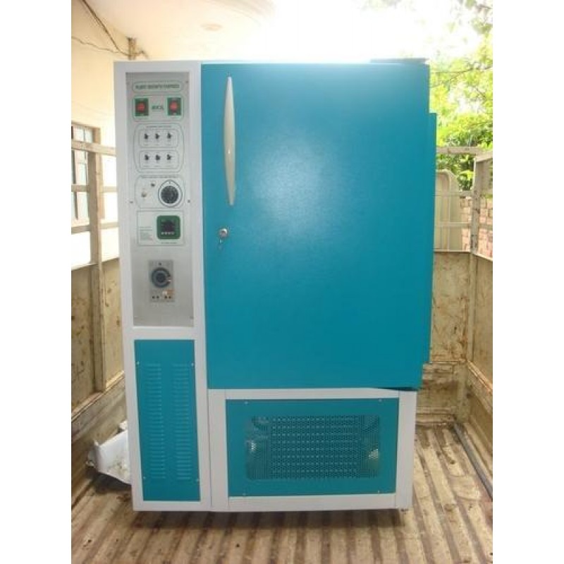 - Angle Iron Frame With Castor Wheel For Easy Movement. Fitted With 2 Nos. Fan For Cooling & Heating & 2 Nos. 1/70 HP Motor For Humidity Spray / Injection In The Control & Inside The Chamber For Uniform Air Circulation.
