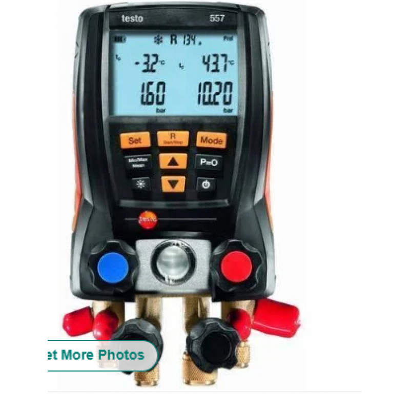 The NEW testo 557 has an integrated app to access measurement data on smart phones via bluetooth. The digital manifold aids in commissioning, service and maintenance, 4-way valve block, integrated vacuum measurement, incl. 2 clamp probes, transport case, calibration protocol and batteries.