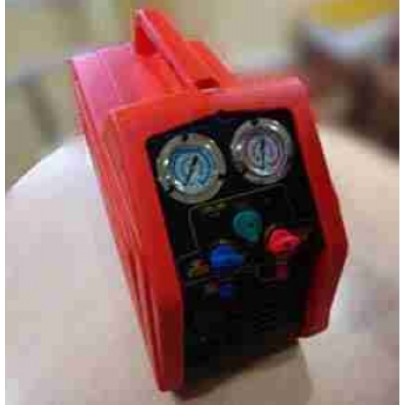 To start the unit connect the service hose to the lower side of the refrigeration system and press the start button. The unit will start operating and the refrigerant gas gets extracted and distilled. It will turn off automatically after all the gas is removed. It will pull a 10 degree vacuum and if a positive pressure is sensed the unit will start automatically.