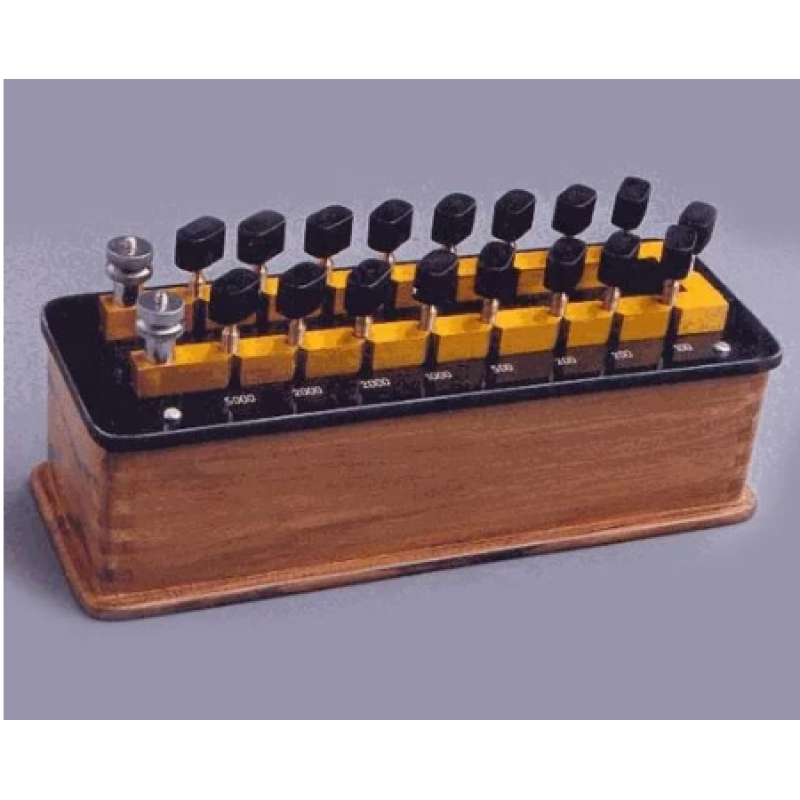 Our company is engaged in manufacturing and supplying finely designed Resistance Box. The Resistance Box offered by us is a housed-in box that is fitted with sturdy brass knobs. The finest grade teak wood is used to construct this Resistance Box. Also, this efficiently performing and long lasting Resistance Box that comes with a 4 mm socket terminal. Clients can avail precisely manufactured Resistance Box from us in specifications exactly as per their requirements at competitive prices.