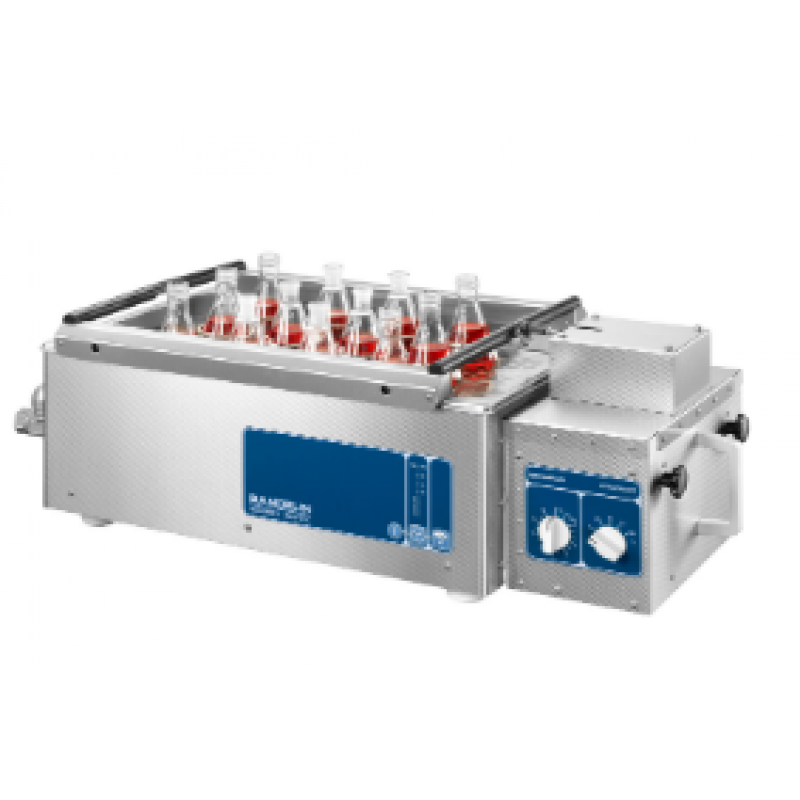 SONOSHAKE offers a wide range of applications for sample preparation in many areas of analysis, as in environmental and foodstuffs analytics as well as in medical diagnostics. The bath has a basic area of 500 mm x 300 mm and a tank depth of only 65 mm, making it ideal for sonication of samples in laboratory flasks. The samples can be sonicated either for a selected time or in continuous mode.