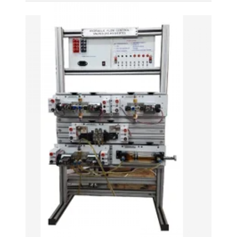 Its table top model. Uses aluminium profile plate experimentboard.• Optionally table may be provided with drawers (3 Nos.) to storecomponents when not in use.• Pneumatic grade QRC used with built in NRV arrangement forbuilding hydraulic circuits using plastic transparent 6mm ODtubing 7 bar max.• All components are mounted using lever operated profileadapters for quick release & placement.• Quantities may be modified as per your requirement