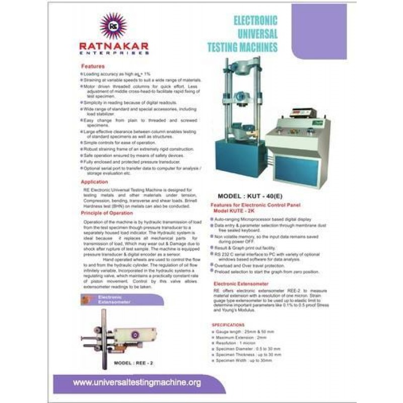 We are a renowned and customer centric firm, which is engaged in delivering a comprehensive range of Electronic Universal Testing Machine. It is equipped with electronic digital display for load and elongation.