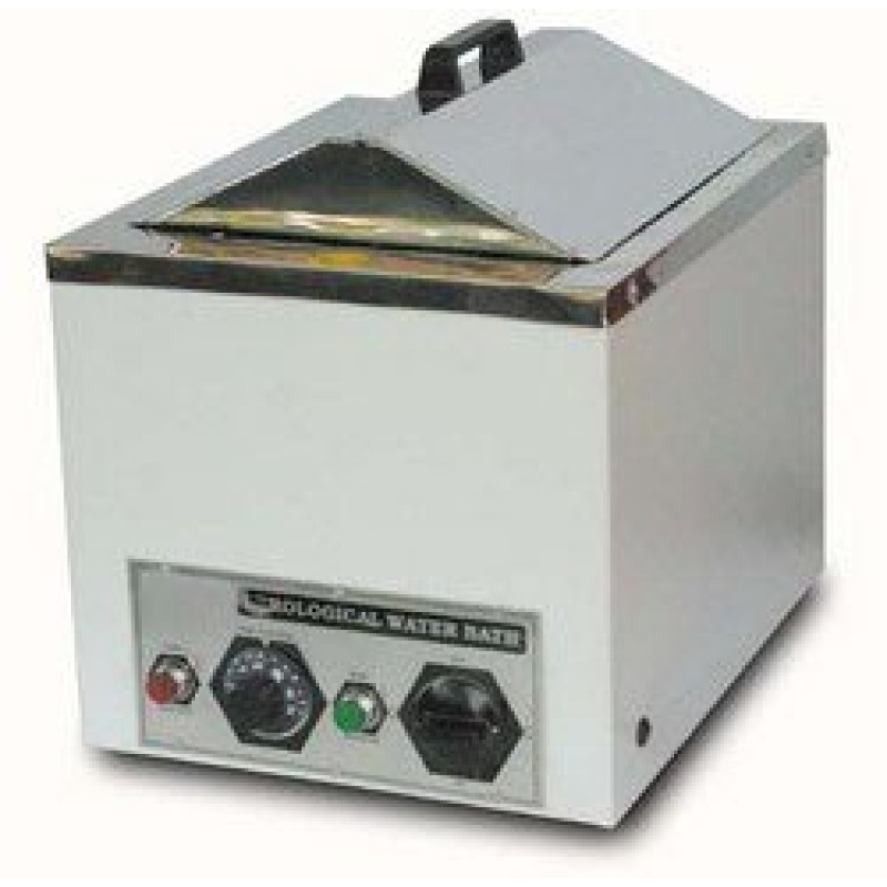 Double wall construction, inner being made out of highly polished thick stainless steel and outer made out of thick mild steel sheet finished in stoving white enamel paint or staple mat colour combinations. The gap is filled with special glass wool for temp. insulation.The bath is provided with the drain cock to easily drainout the water and clean the chamber when required. A pyramidal shaped cover is provided.Immersion type heating elements are fitted at bottom. Temp. range 5o C above ambient to 80o C with accuracy + 0.5oC to 1oC is controlled by capillary thermostat regulated by a graduated knob on the panel, which is also provided with pilot lamp etc.The equipment is workable on 220V AC 50Hz single phase. The baths are supplied without racks, thermometer and stirring arrangement.