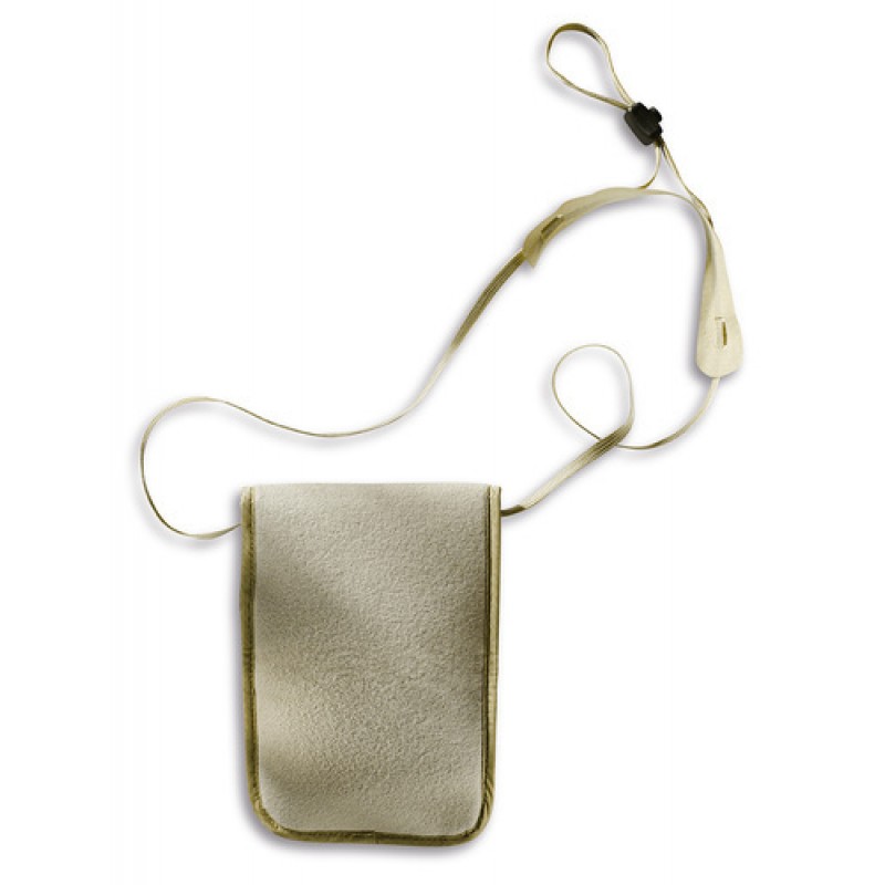 Small, lightweight neck pouch. The neck pouch is made of skin-friendly material and is comfortably worn around the neck. The length of the strap can be adjusted and has skin-friendly neck or shoulder support. The zip-up compartment and outer pocket offer sufficient space for money, credit cards and passport.